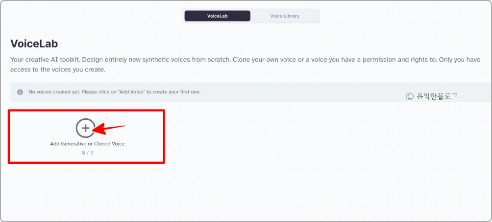보이스클로닝은 유료 요금제를 구독해야 이용 가능한 기능인데요. 샘플 보이스를 업로드하면 이를 학습시켜 나만의 목소리로 만들 수 있습니다.