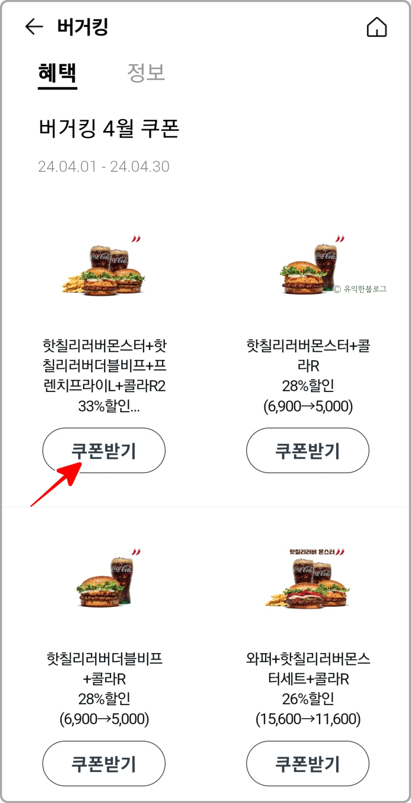 버거킹 할인 쿠폰 받는 법 : 버거킹 앱 이용