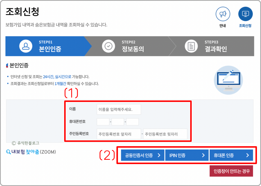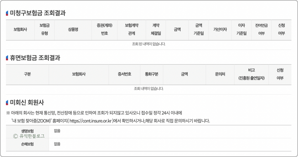 내보험찾아줌 홈페이지 이용 방법 (보험 가입내역, 미청구보험금, 휴면보험금 한번에 조회)