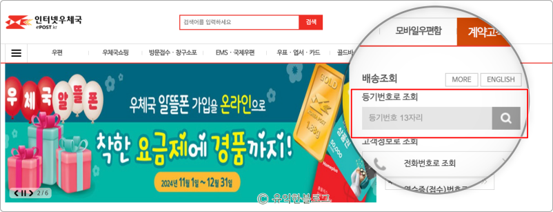 우체국 등기조회 방법 첫번째, 우체국 홈페이지 이용