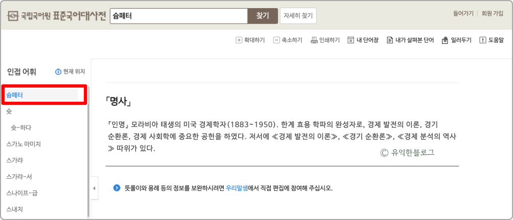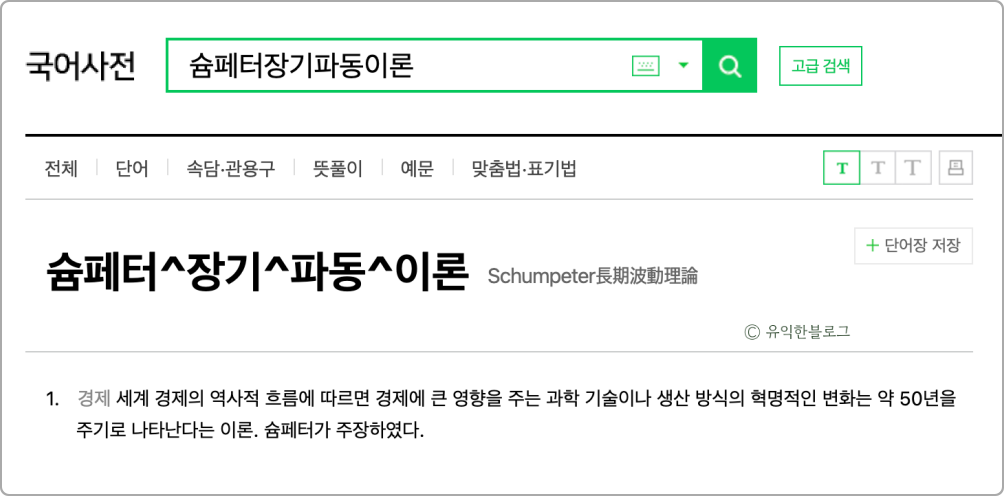 참고로 네이버 국어사전에는 ‘슘페터장기파동이론’이라는 단어도 올라와 있는 것을 볼 수 있었는데요.