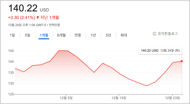 이 글을 쓰는 2024년 12월 현재, 엔비디아 주가는 약 140달러 선에서 거래되고 있으며 이는 연초 대비 소폭 상승한 수준입니다.