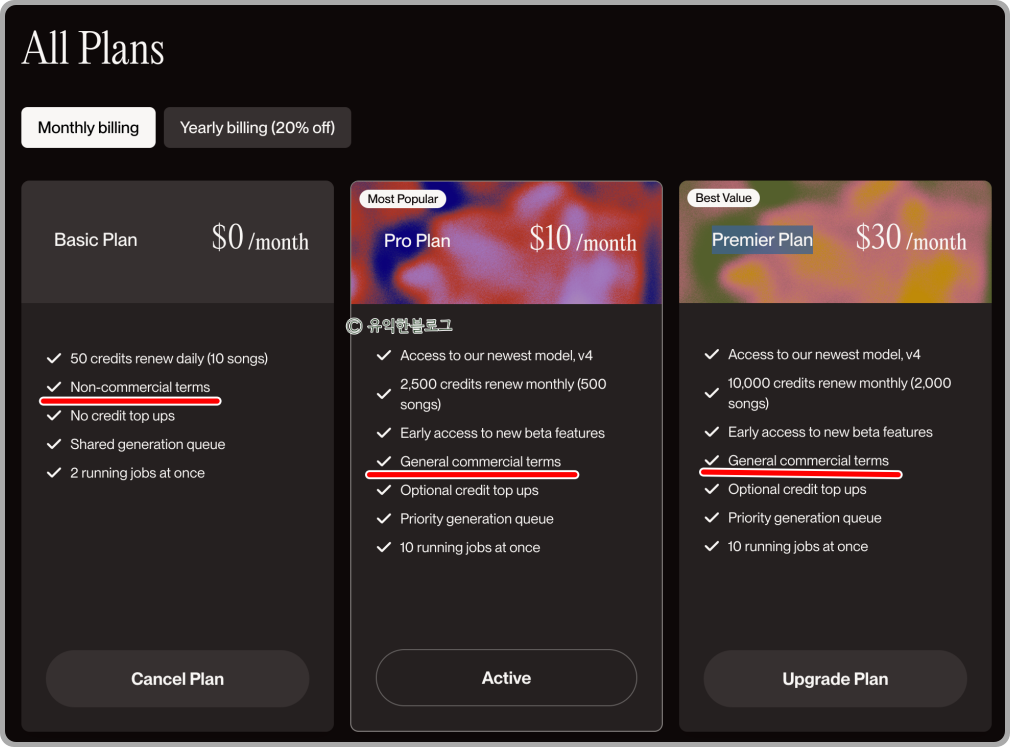 Suno AI 무료 플랜 vs 유료 플랜 (상업적 사용 가능 여부)