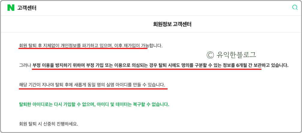 또한 부정 가입이나 이용으로 의심되는 경우 네이버에서 명의를 구분할 수 있는 정보를 6개월간 보관을 한다고 합니다.