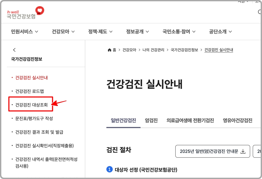 건강검진 대상자 조회방법 (건보공단 홈페이지)