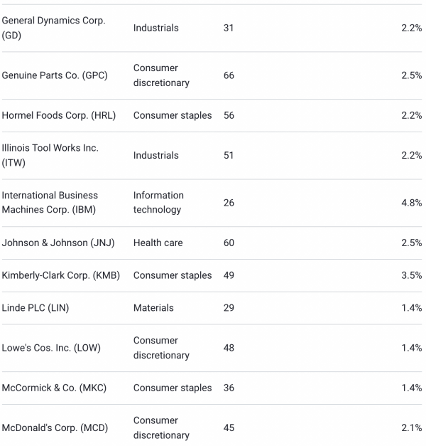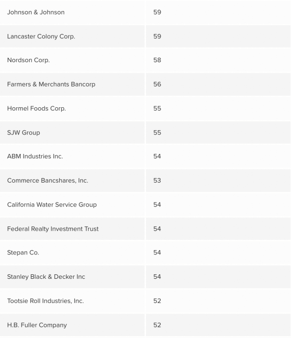 올해 발표된 미국 배당킹 주식 리스트에는 총 37개의 기업이 있습니다.