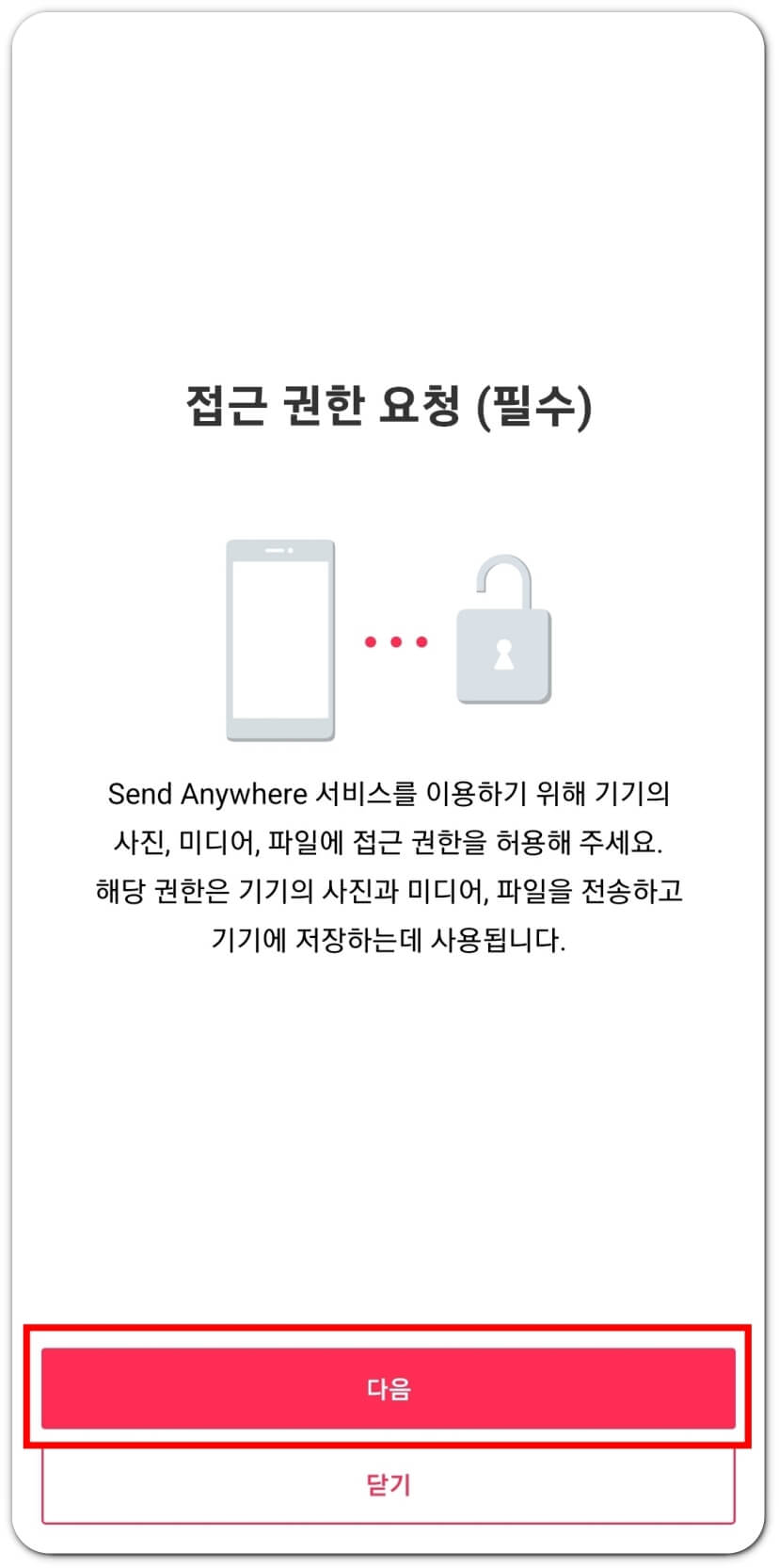 접근 권한 요청 화면이 나오면 '다음'을 누른 뒤 권한 요청을 수락해 주세요.