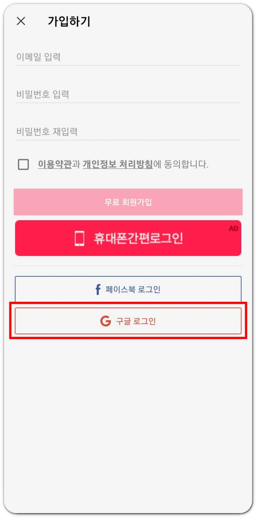 회원가입은 이메일과 비밀번호를 입력해 간단하게 할 수 있는데요, 페이스북이나 구글 계정으로 가입하셔도 됩니다.