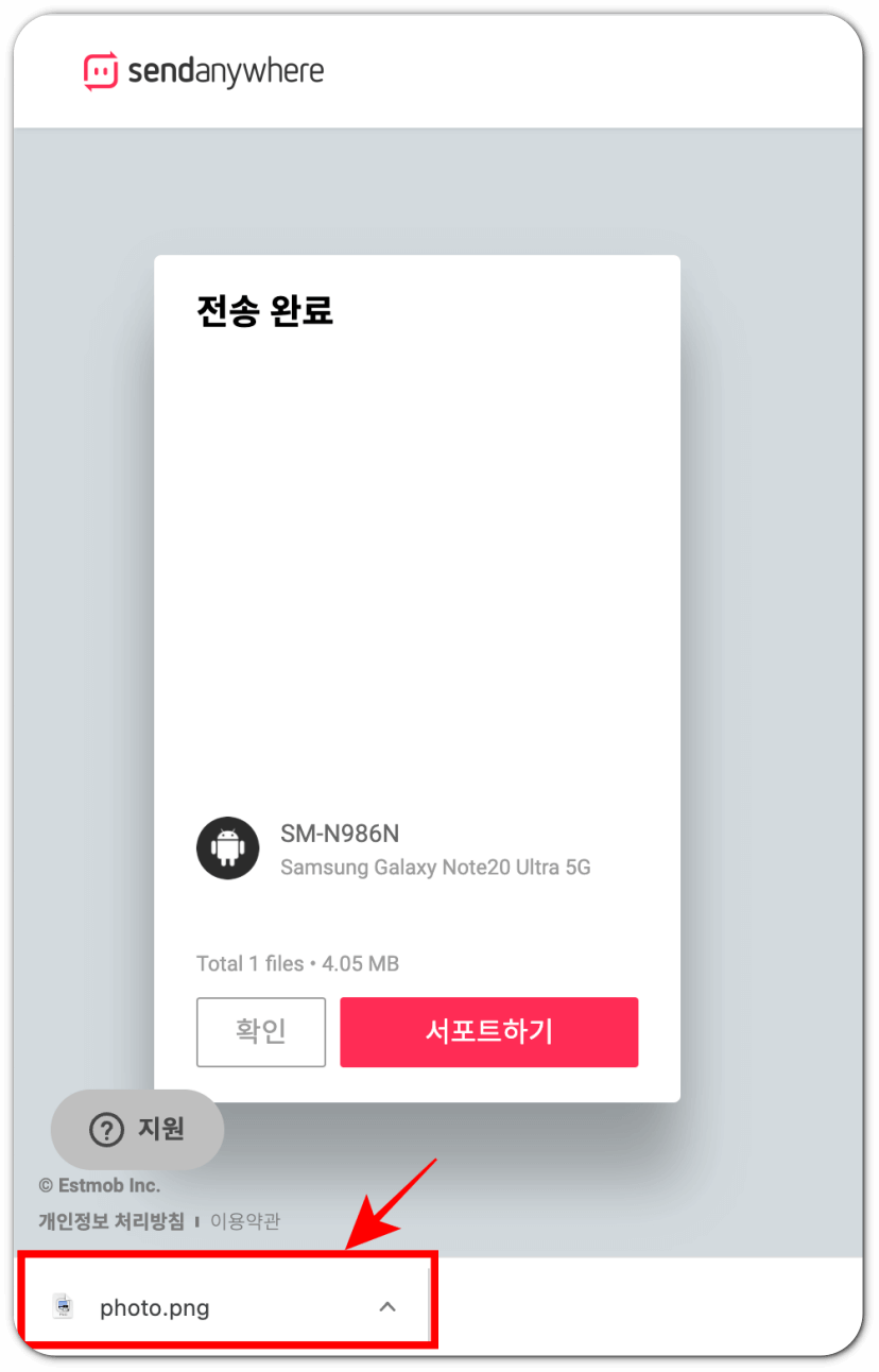 반대로 PC에서 스마트폰으로 파일 전송하기도 센드 애니웨어를 통해 간단하게 할 수 있습니다.