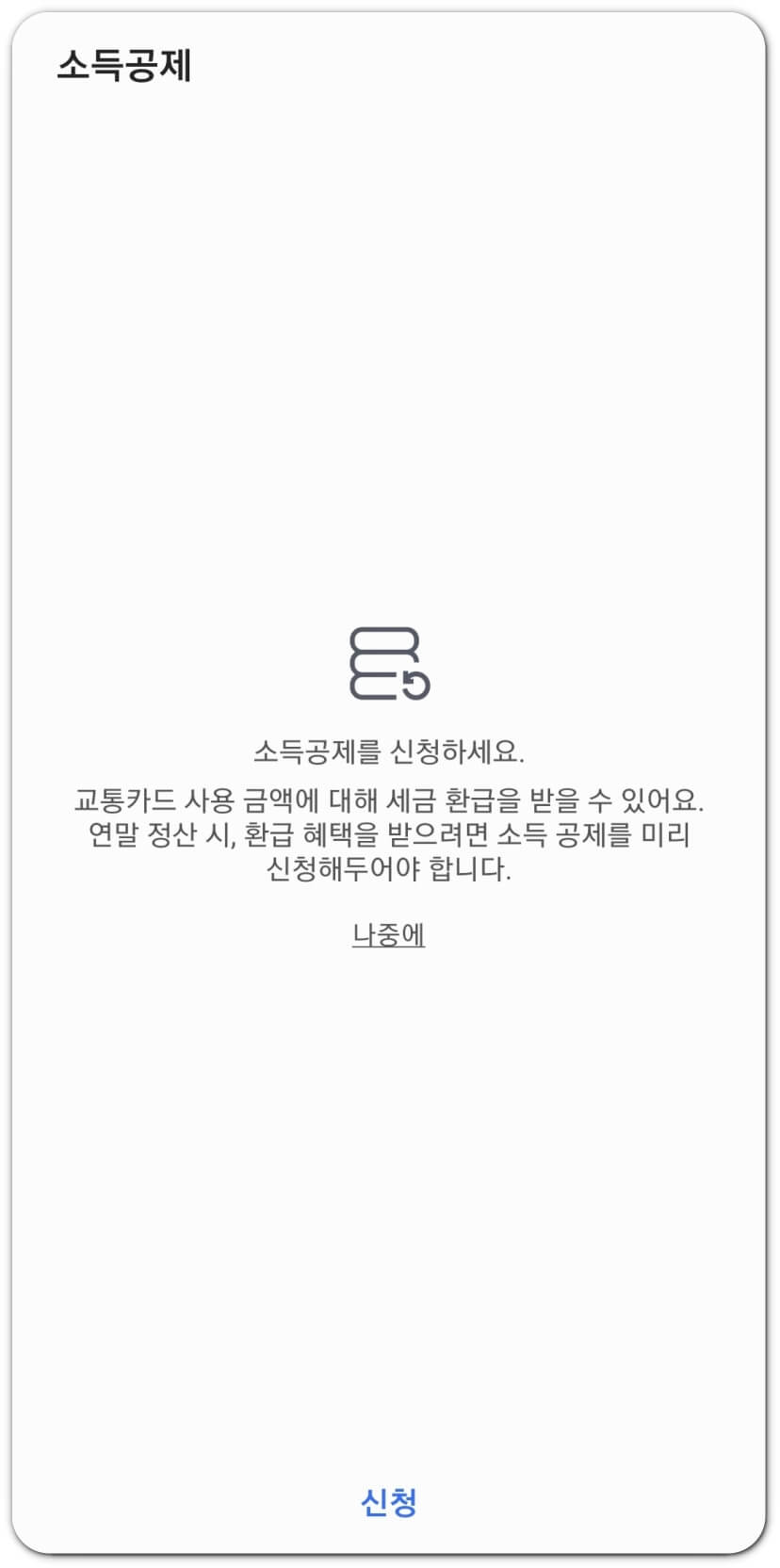 '완료'를 누르면 아래 화면처럼 소득공제를 신청하는 화면으로 바로 연결됩니다.