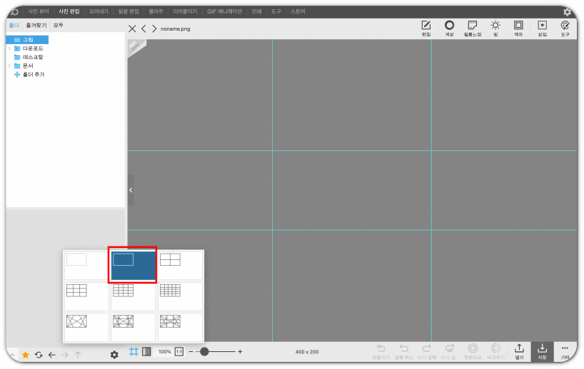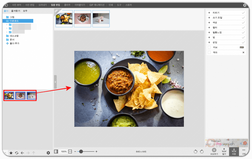 왼편 탐색기를 이용해 원하는 사진들을 오른쪽 섹션으로 끌고 옵니다.
