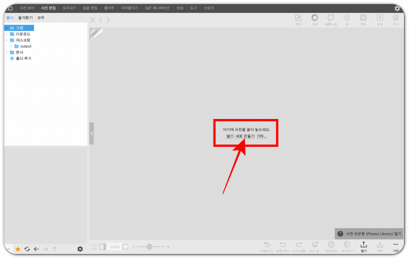 (기존에 열려 있는 이미지가 있는 경우 상단 중앙쯤에 있는 'X'를 눌러주시면 아래 사진과 같은 화면이 뜹니다.)