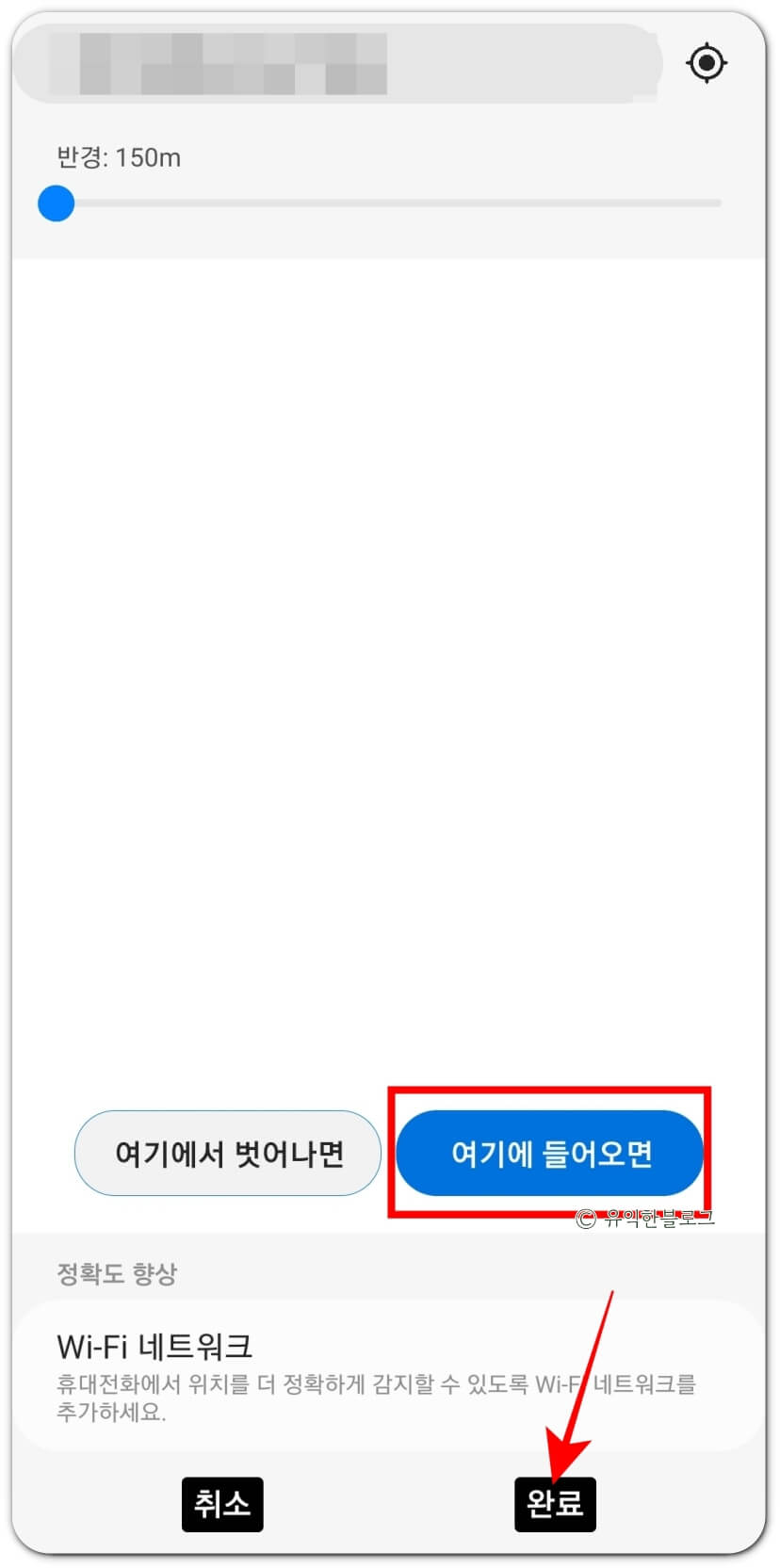 조건을 '여기에 들어오면'으로 둔 뒤, '완료' 버튼을 눌러줍니다.