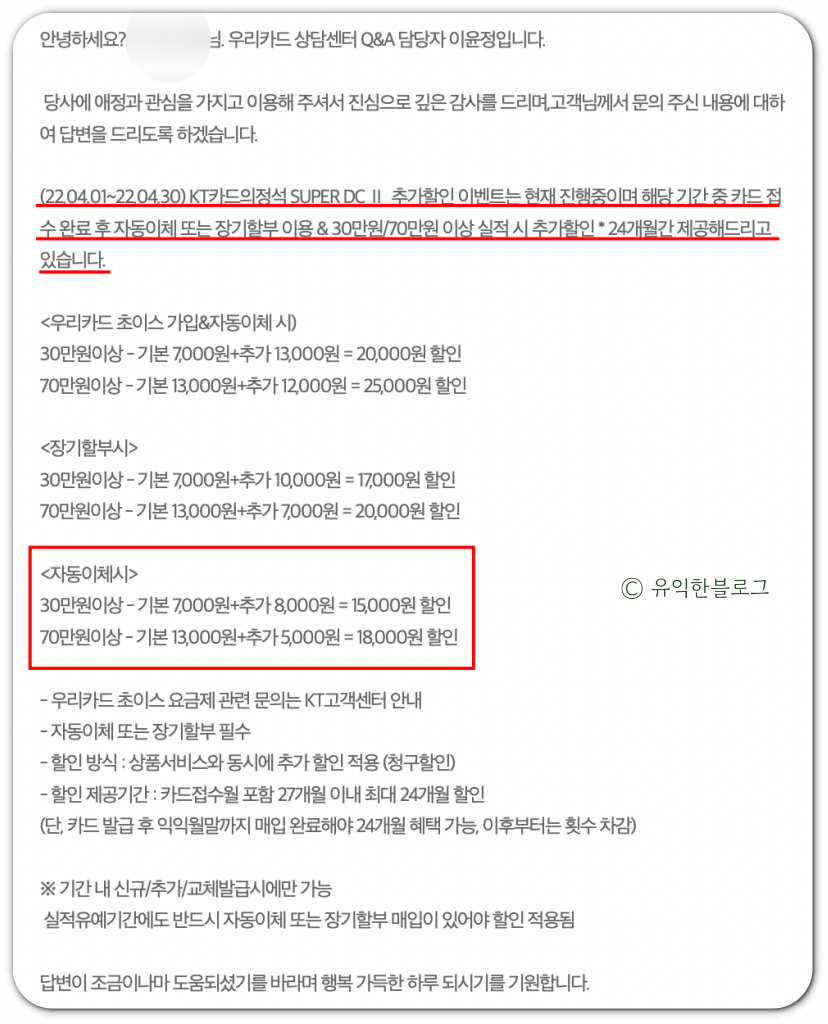 kt 통신비 할인 우리카드 : kt 카드의정석 super dc2