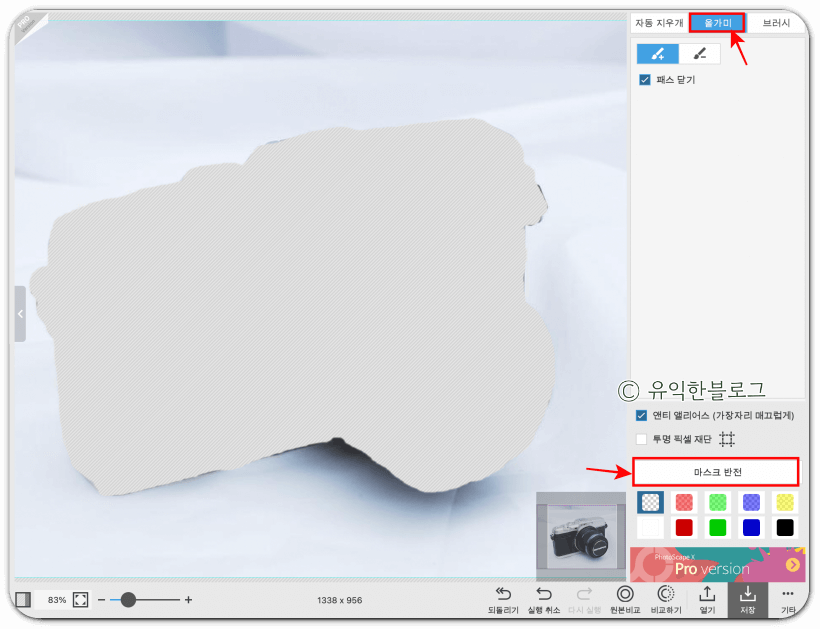 그리고 오른편 하단의 '마스크 반전' 버튼을 클릭해주세요.
