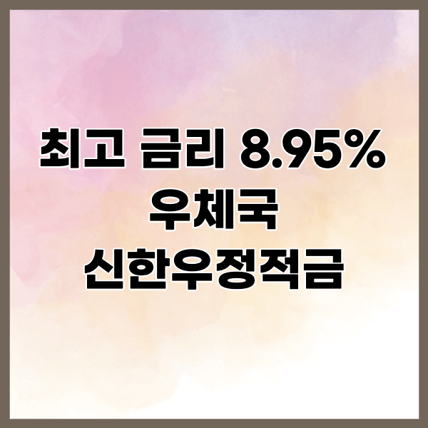 이번 글에서는 최고 연 8.95%의 이자를 받을 수 있는 우체국 신한우정적금에 대해 알아보려고 합니다. 우체국과 신한카드가 함께 출시한 상품인데요, 얼마전 높은 이율로 화제가 되었던 청년희망적금에 맞먹는 이율입니다. 신한카드 온라인채널로 대상 카드를 보유한 고객이면 누구나 신청이 가능하고요. 그럼 지금부터 우체국 신한우정적금 조건과 가입방법에 대해 알아보도록 하겠습니다.
