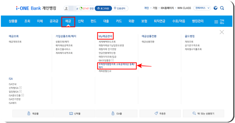 은행마다 조금씩 다르긴 하지만 ‘소득공제대상 등록’이라는 메뉴가 있는데 여기서 먼저 등록을 해 줍니다.
