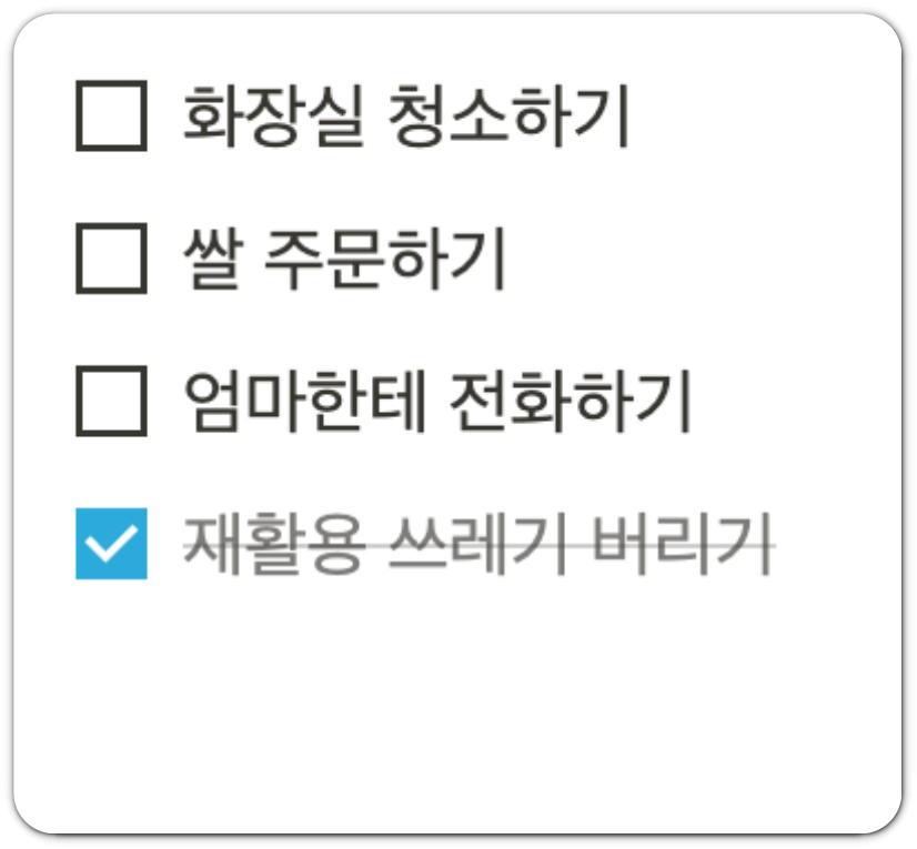 완료한 일은 체크박스를 누르면 선이 그어지면서 완료 처리가 되고요.