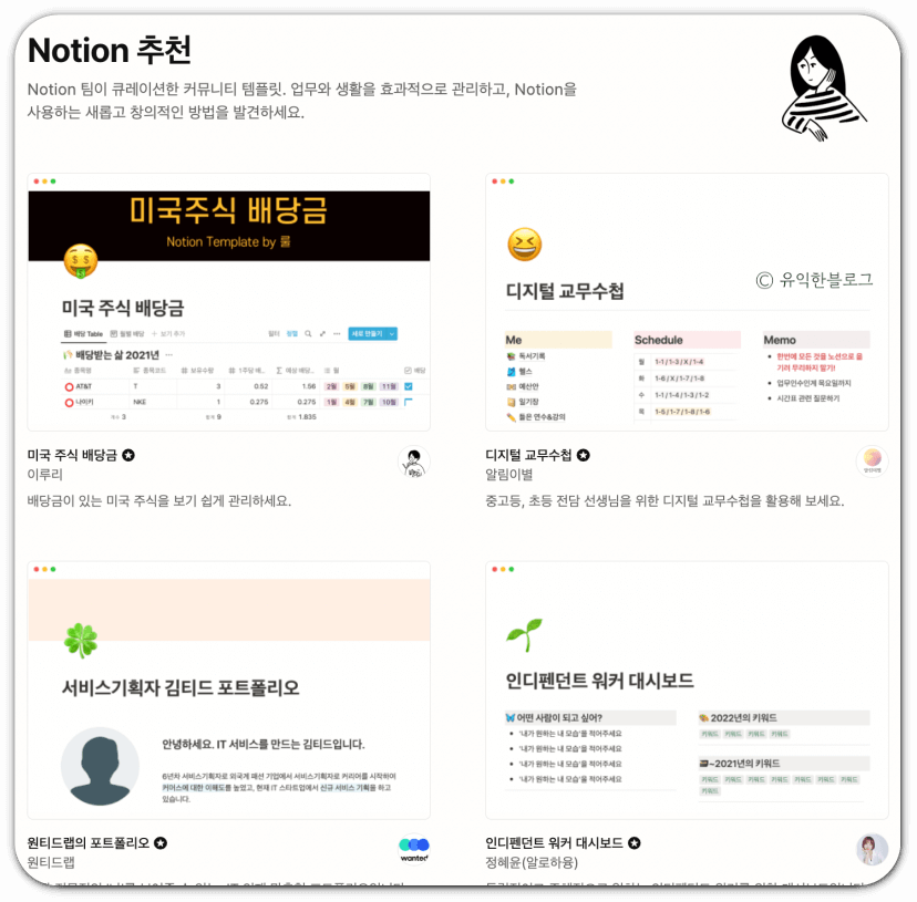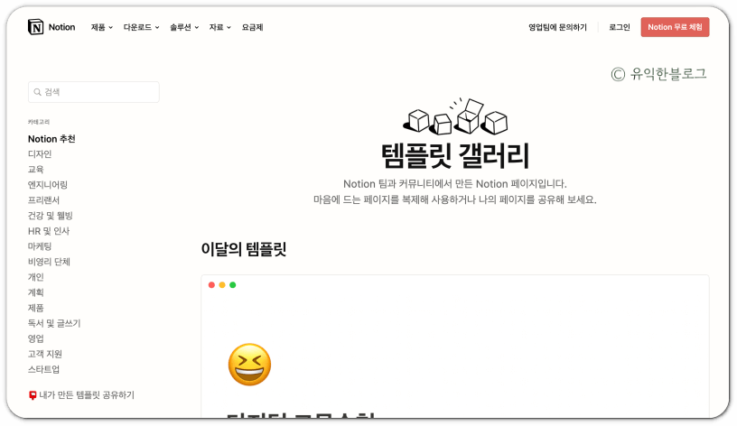 블로그나 유튜브를 통해 개인적으로 노션 템플릿을 공유해 주시는 분들도 많지만 오늘은 노션에서 제공하는 노션 템플릿 사이트를 둘러보도록 하겠습니다.