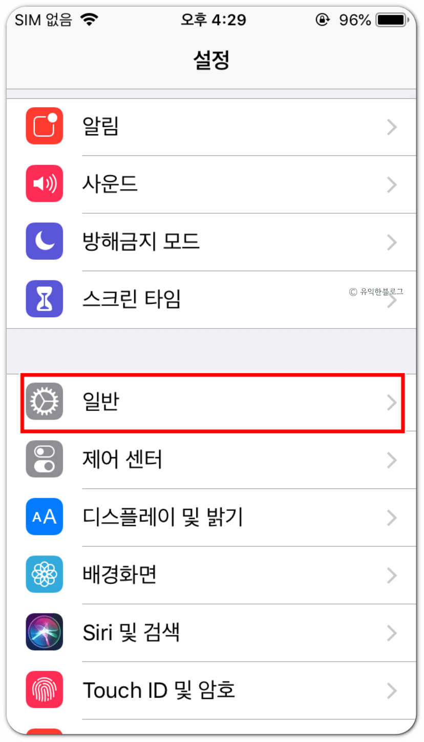 아이폰의 경우 ‘설정’ 앱을 연 뒤 ‘일반’ 메뉴를 선택합니다.