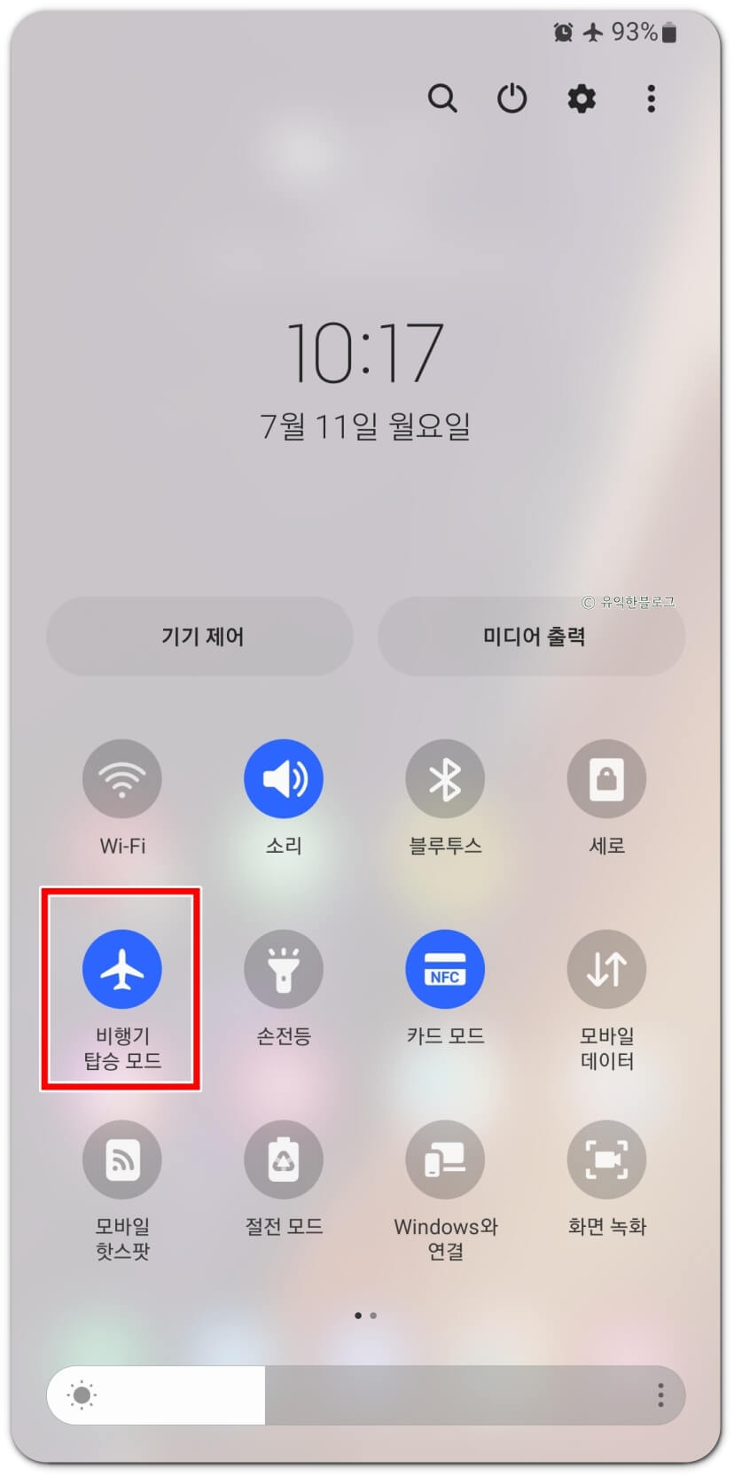 이 상태에서 스마트폰의 비행기모드를 켜 줍니다. 비행기모드를 켜면 데이터와 와이파이가 전부 꺼지고 인터넷에 접속할 수 없는 상태가 되는데요, 혹시 모르니 와이파이가 잘 꺼져 있는지 다시 한번 체크해주세요.